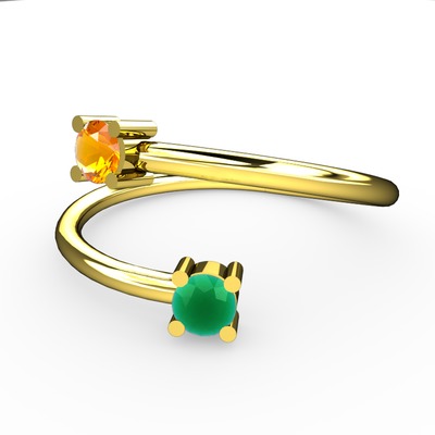 Sitrin ve kök zümrüt 18 ayar altın yüzük
