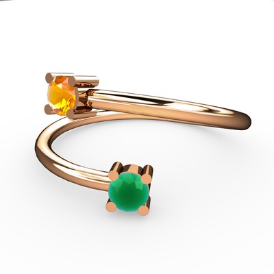 Sitrin ve kök zümrüt 18 ayar rose altın yüzük