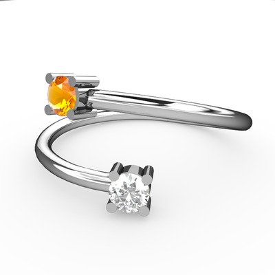 Sitrin ve pırlanta 8 ayar beyaz altın yüzük (0.24 karat)