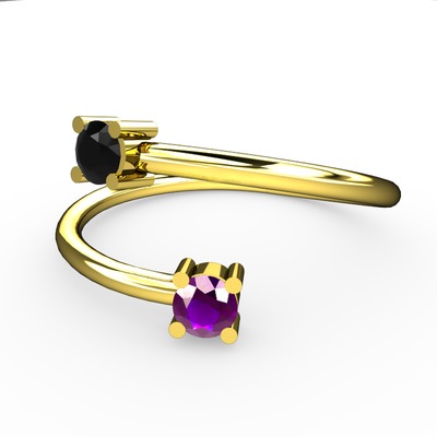 Siyah zirkon ve ametist 8 ayar altın yüzük