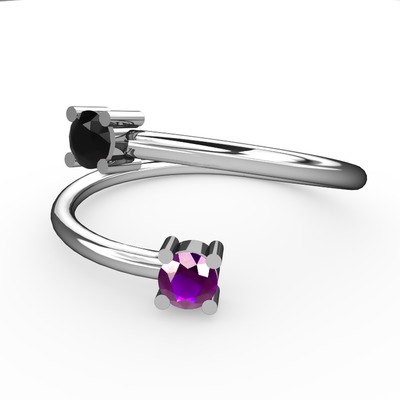 Siyah zirkon ve ametist 8 ayar beyaz altın yüzük