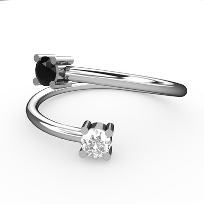 Siyah zirkon ve beyaz zirkon 14 ayar beyaz altın yüzük