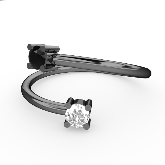 Siyah zirkon ve beyaz zirkon 925 ayar siyah rodyum kaplama gümüş yüzük