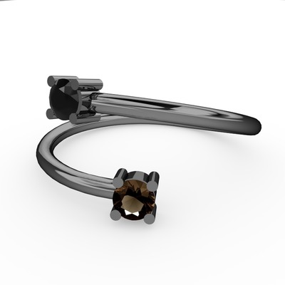 Siyah zirkon ve dumanlı kuvars 925 ayar siyah rodyum kaplama gümüş yüzük