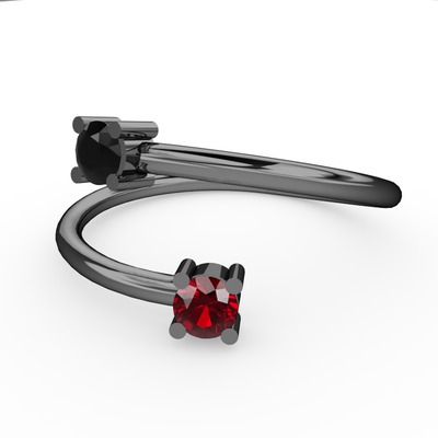 Siyah zirkon ve garnet 925 ayar siyah rodyum kaplama gümüş yüzük