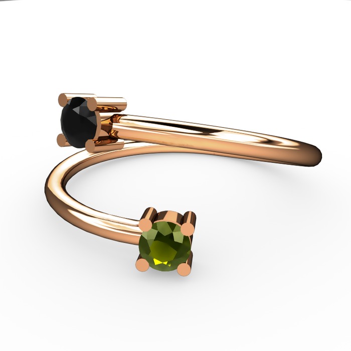 Siyah zirkon ve peridot 14 ayar rose altın yüzük