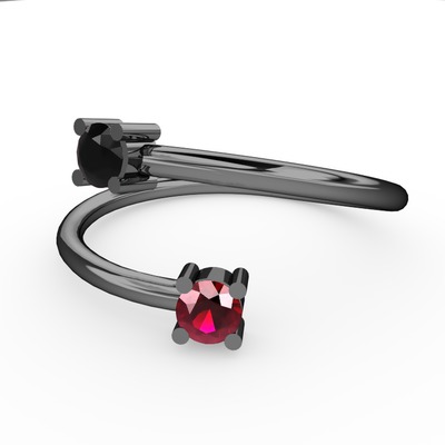 Siyah zirkon ve rodolit garnet 925 ayar siyah rodyum kaplama gümüş yüzük