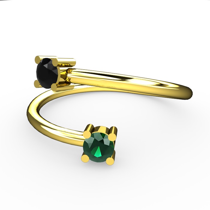 Siyah zirkon ve yeşil kuvars 14 ayar altın yüzük