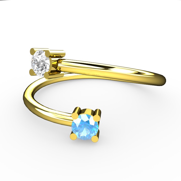 Swarovski ve akuamarin 925 ayar altın kaplama gümüş yüzük