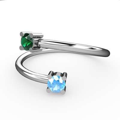 Yeşil kuvars ve akuamarin 18 ayar beyaz altın yüzük