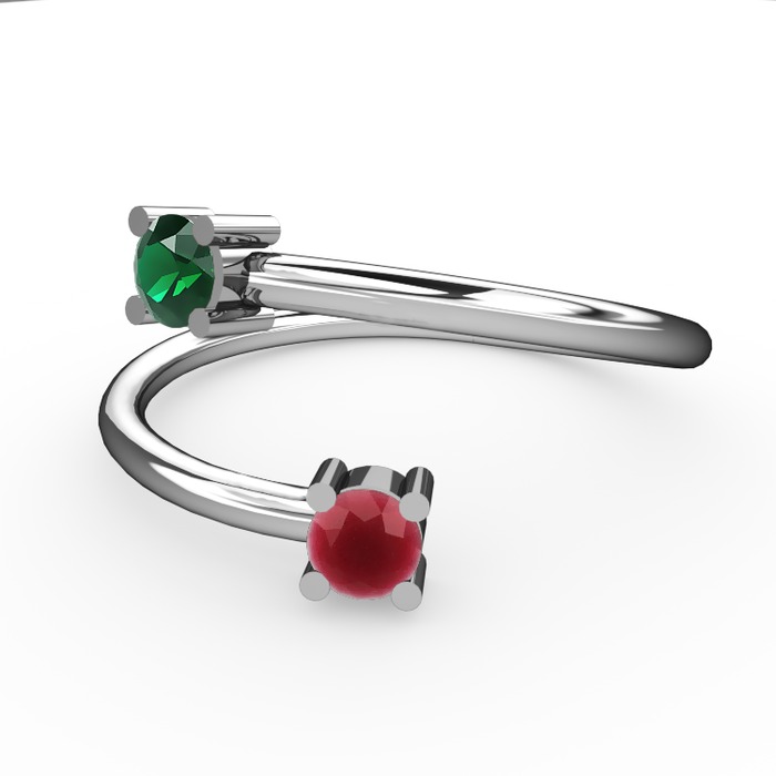 Yeşil kuvars ve kök yakut 8 ayar beyaz altın yüzük