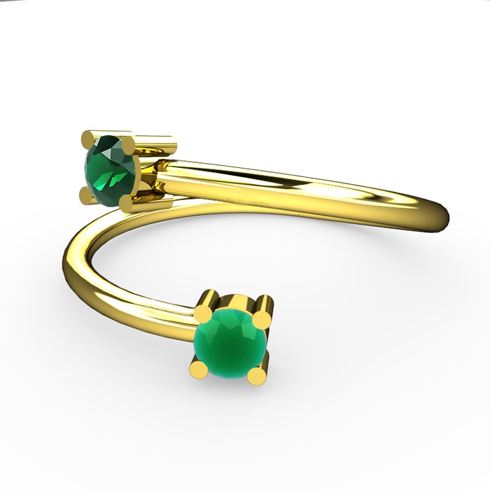 Yeşil kuvars ve kök zümrüt 14 ayar altın yüzük