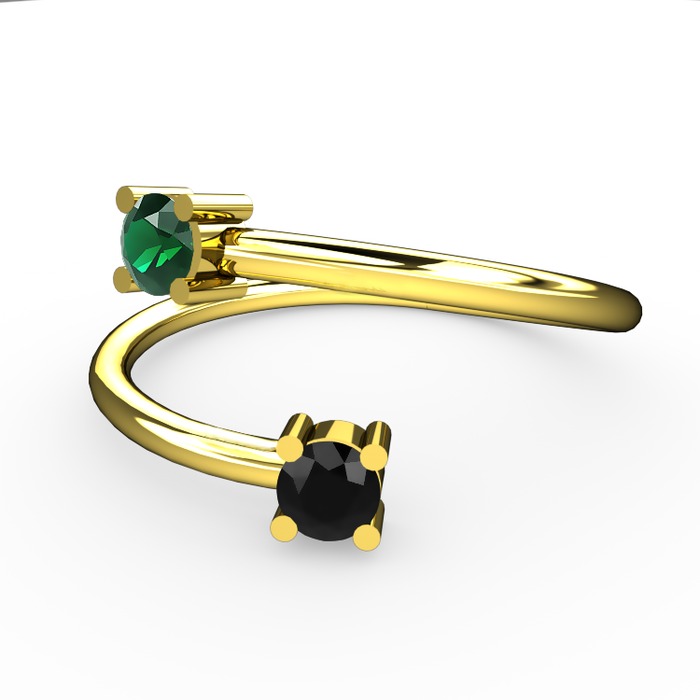 Yeşil kuvars ve siyah zirkon 14 ayar altın yüzük
