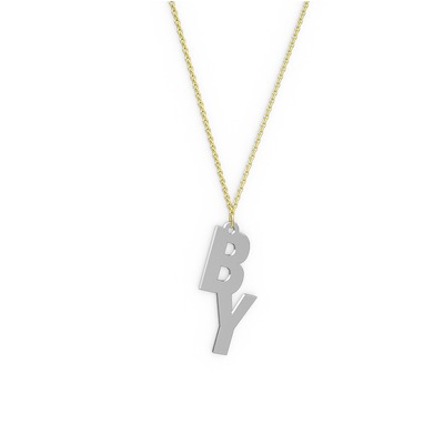 14 ayar beyaz altın kolye (2 karakterli comic-sans, 40 cm altın rolo zincir)