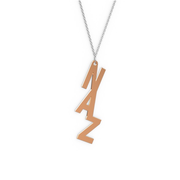 8 ayar rose altın kolye (3 karakterli comic-sans, 40 cm beyaz altın rolo zincir)