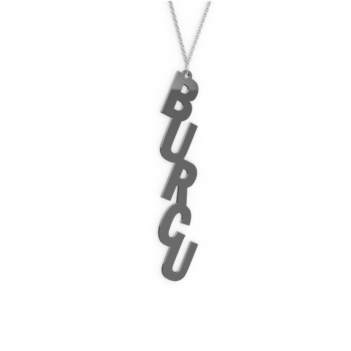 925 ayar siyah rodyum kaplama gümüş kolye (5 karakterli comic-sans, 40 cm beyaz altın rolo zincir)