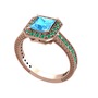 Akuamarin ve kök zümrüt 925 ayar rose altın kaplama gümüş yüzük