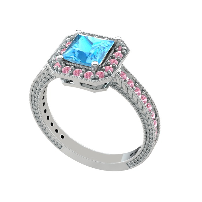 Akuamarin ve pembe kuvars 14 ayar beyaz altın yüzük