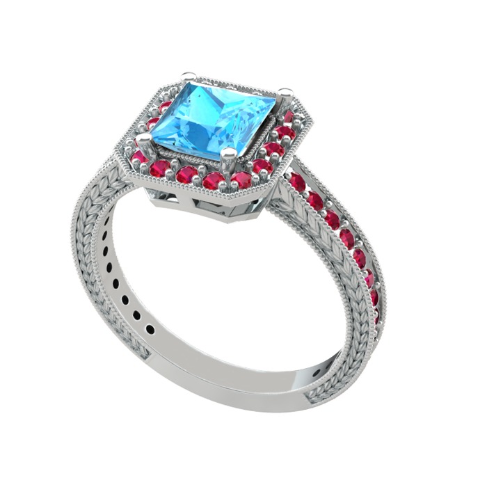 Akuamarin ve rodolit garnet 8 ayar beyaz altın yüzük