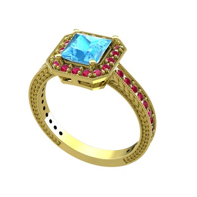 Akuamarin ve rodolit garnet 925 ayar altın kaplama gümüş yüzük