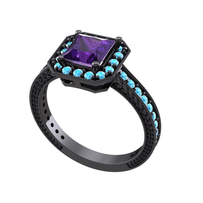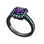 Ametist ve akuamarin 925 ayar siyah rodyum kaplama gümüş yüzük