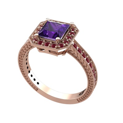Ametist ve kök yakut 18 ayar rose altın yüzük