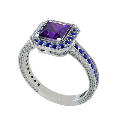 Ametist ve lab safir 8 ayar beyaz altın yüzük