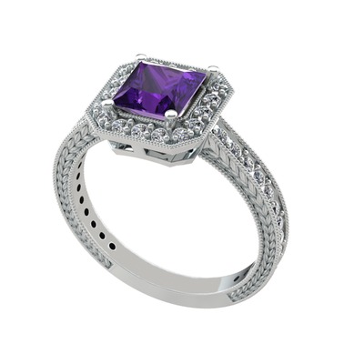 Ametist ve pırlanta 8 ayar beyaz altın yüzük (0.484 karat)