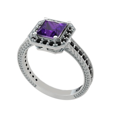 Ametist ve siyah zirkon 925 ayar gümüş yüzük