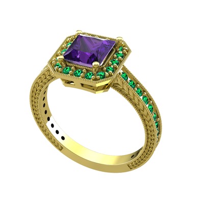 Ametist ve yeşil kuvars 18 ayar altın yüzük