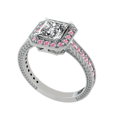 Beyaz zirkon ve pembe kuvars 8 ayar beyaz altın yüzük