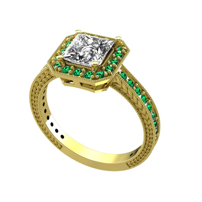 Beyaz zirkon ve yeşil kuvars 8 ayar altın yüzük