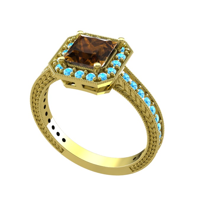 Dumanlı kuvars ve akuamarin 925 ayar altın kaplama gümüş yüzük