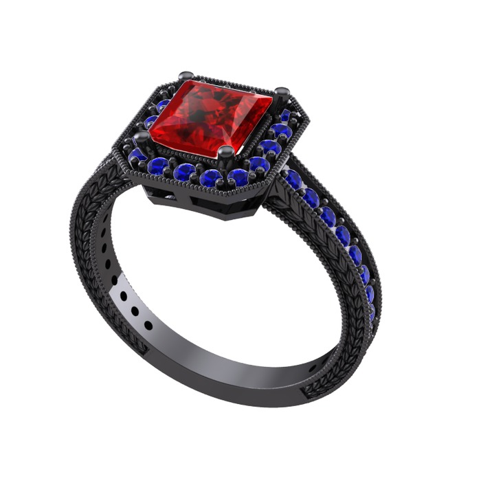 Garnet ve lab safir 925 ayar siyah rodyum kaplama gümüş yüzük