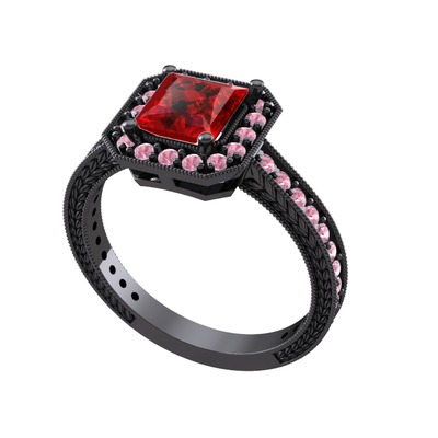 Garnet ve pembe kuvars 925 ayar siyah rodyum kaplama gümüş yüzük
