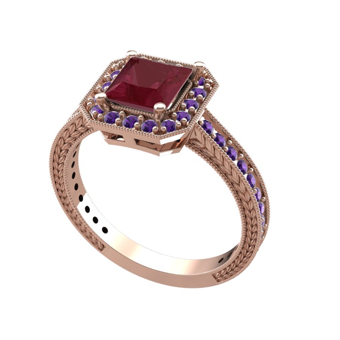 Kök yakut ve ametist 14 ayar rose altın yüzük