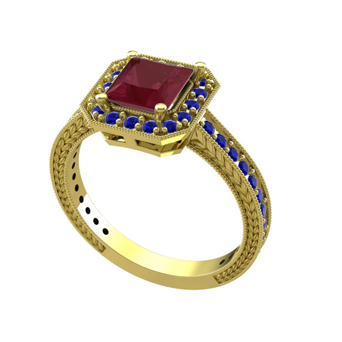 Kök yakut ve lab safir 8 ayar altın yüzük