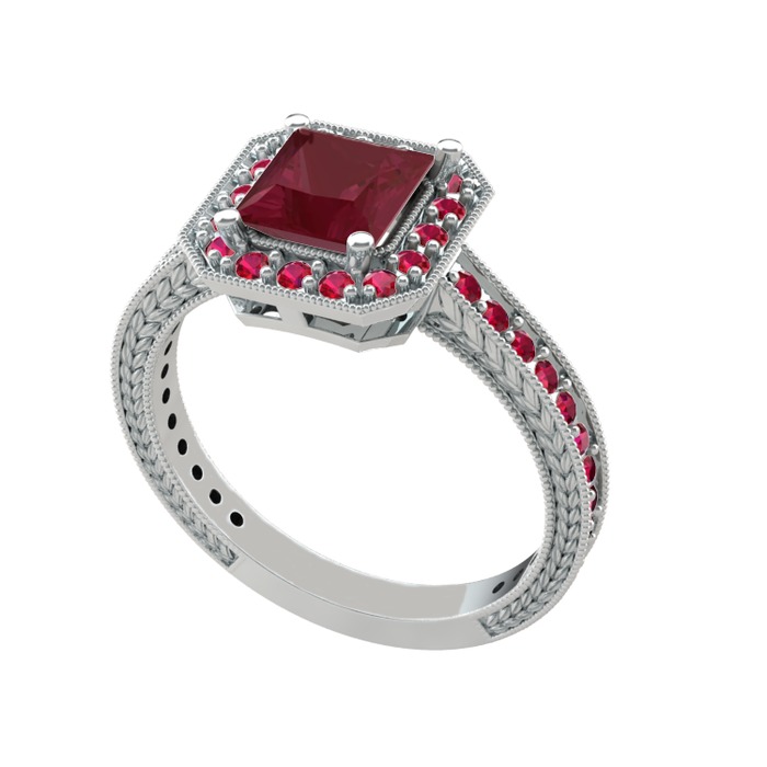 Kök yakut ve rodolit garnet 8 ayar beyaz altın yüzük