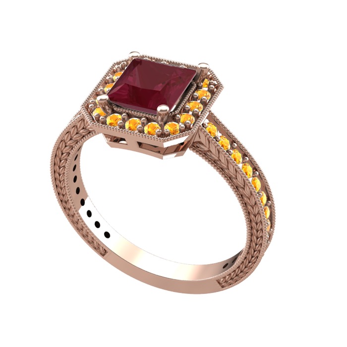 Kök yakut ve sitrin 925 ayar rose altın kaplama gümüş yüzük