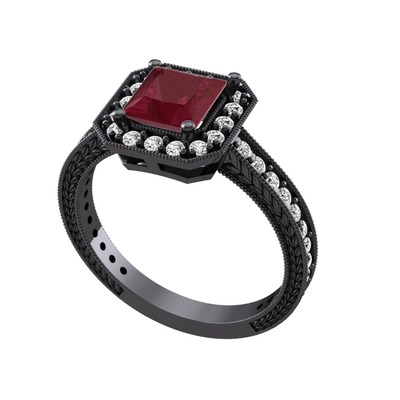 Kök yakut ve swarovski 925 ayar siyah rodyum kaplama gümüş yüzük