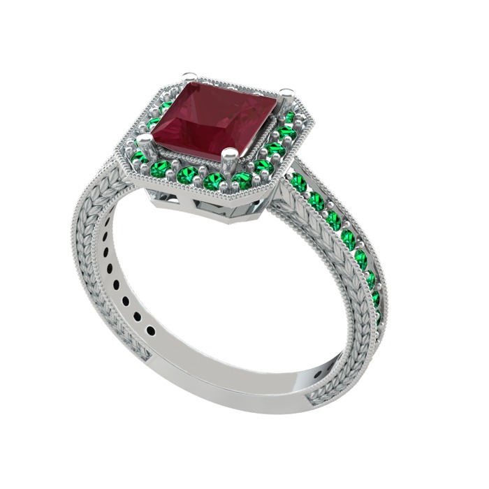 Kök yakut ve yeşil kuvars 14 ayar beyaz altın yüzük