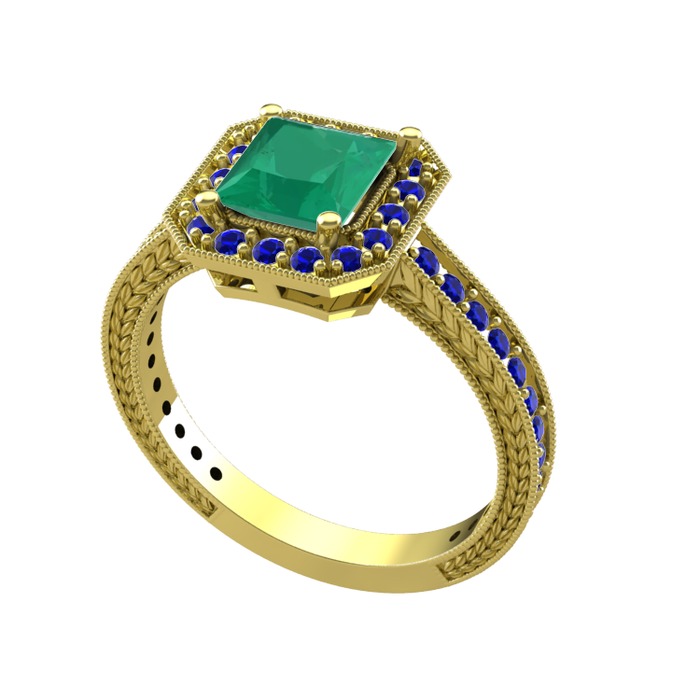 Kök zümrüt ve lab safir 925 ayar altın kaplama gümüş yüzük