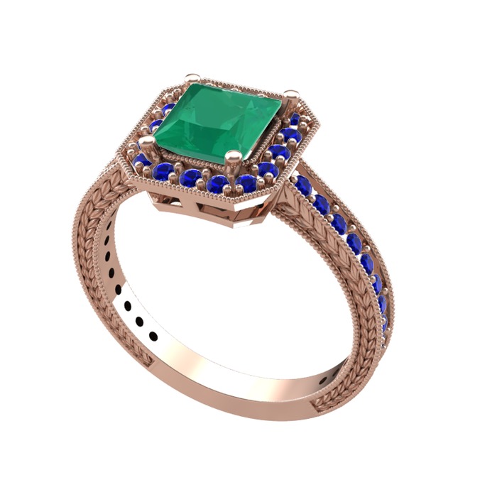 Kök zümrüt ve lab safir 925 ayar rose altın kaplama gümüş yüzük