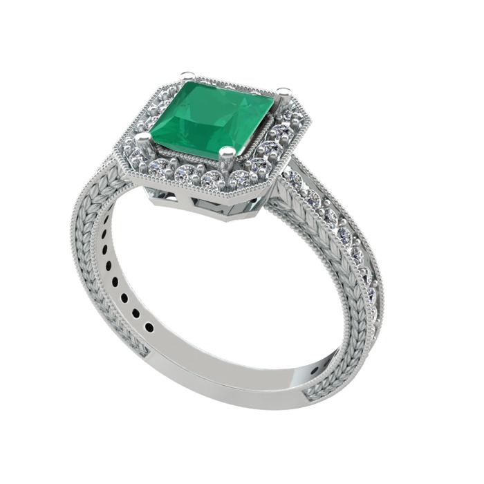 Kök zümrüt ve pırlanta 14 ayar beyaz altın yüzük (0.484 karat)