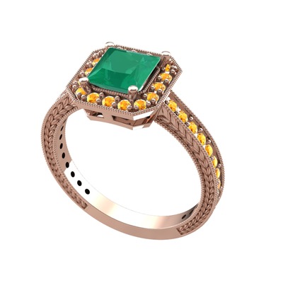 Kök zümrüt ve sitrin 925 ayar rose altın kaplama gümüş yüzük