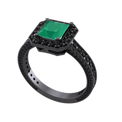 Kök zümrüt ve siyah zirkon 925 ayar siyah rodyum kaplama gümüş yüzük