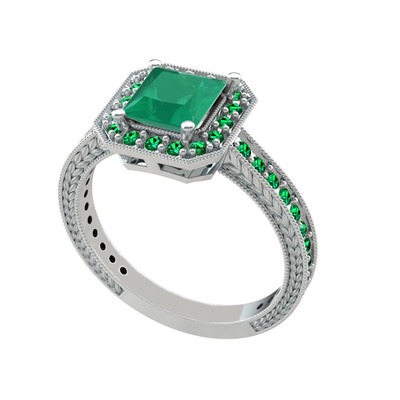 Kök zümrüt ve yeşil kuvars 18 ayar beyaz altın yüzük