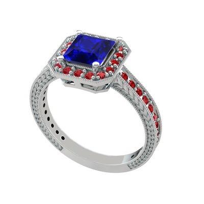 Lab safir ve garnet 8 ayar beyaz altın yüzük