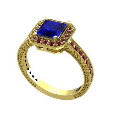 Lab safir ve kök yakut 8 ayar altın yüzük