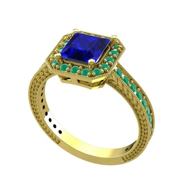 Lab safir ve kök zümrüt 14 ayar altın yüzük